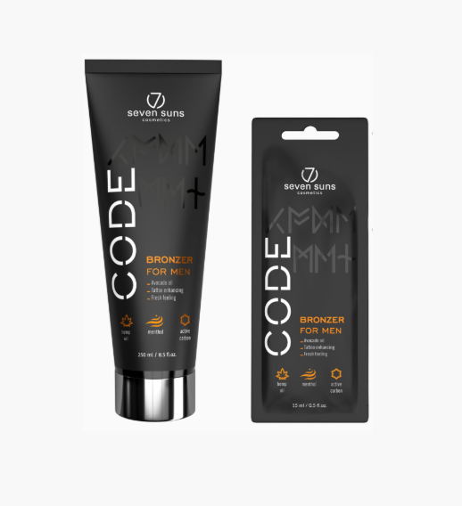 με βάση το DHA, του οποίου η επίδραση είναι ορατή καμιά δεκαριά ώρες μετά από μια συνεδρία μαυρίσματος και τα αποτελέσματα βαθαίνουν με την πάροδο του χρόνου. Το αποτέλεσμα των καθυστερημένων bronzer μπορεί να διαρκέσει έως και 4 ημέρες, ενώ το μαύρισμα είναι βαθύ και διαρκεί περισσότερο.Το CODE Bronzer εγγυάται ένα βαθύ άμεσο μαύρισμα, παρέχει μια ισχυρή δόση μαλακτικών συστατικών και εξασφαλίζει μια βαθιά χαλαρωτική αίσθηση.