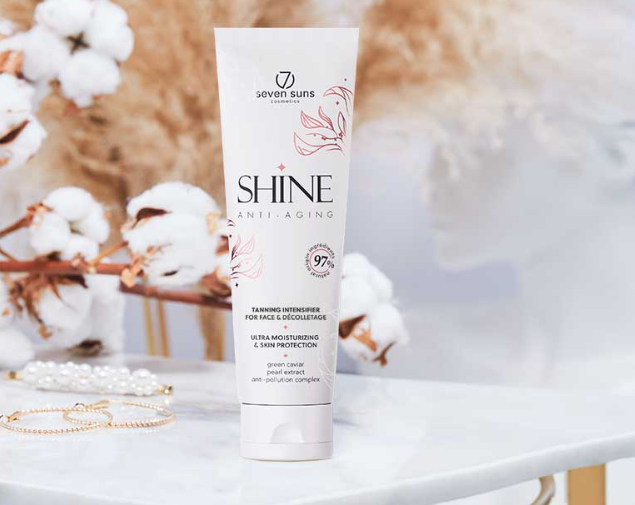 Το Shine ενισχύει το μαύρισμα, τυλίγοντας την ευαίσθητη επιδερμίδα του προσώπου σε μια αναζωογονητική φόρμουλα με ενεργά συστατικά που εξασφαλίζουν ισχυρή αντιγηραντική δράση, ενυδάτωση και προστασία από τους ρύπους.